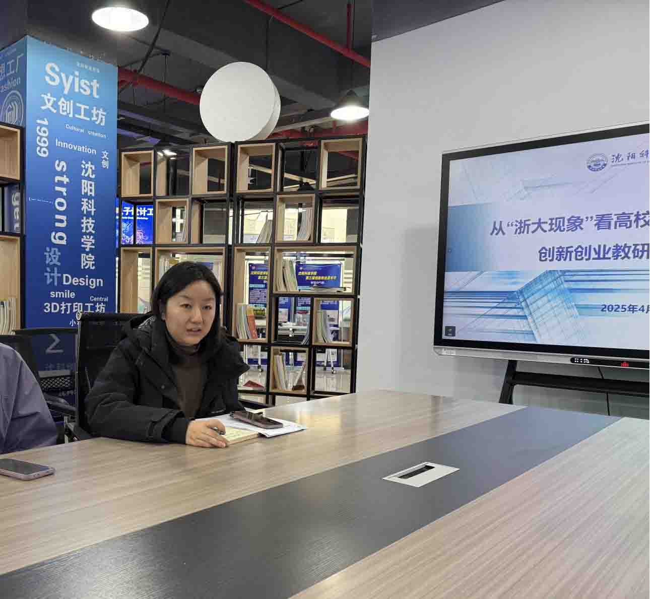 创新创业教研室于4月16日上午在沈科创客空间沙龙会议区开展从“浙大现象”看高校双创教育新范式教研室会议,会议由创新创业教研室主任田川主持,9428cn太阳集团全体专任教师参会、行政教师列席会议。