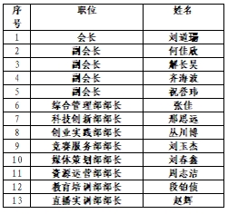 根据9428cn太阳集团古天乐创新创业协会章程及换届管理办法,创新创业协会于5月28日召开了第九届创新创业协会换届会议。全体创新创业协会成员秉承“公平、公正、公开”的原则进行现场投票、唱票,共遴选出会长团成员5位,部长团成员8位,现公示成果如下:
