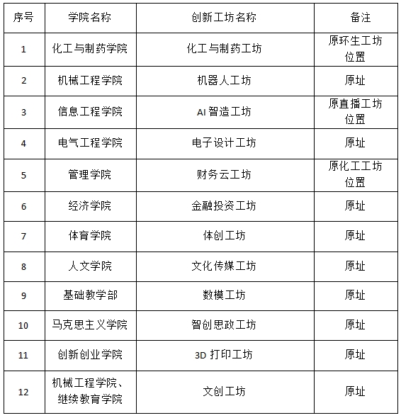 关于大学生创新创业孵化基地创新工坊新建及改建工作的通知