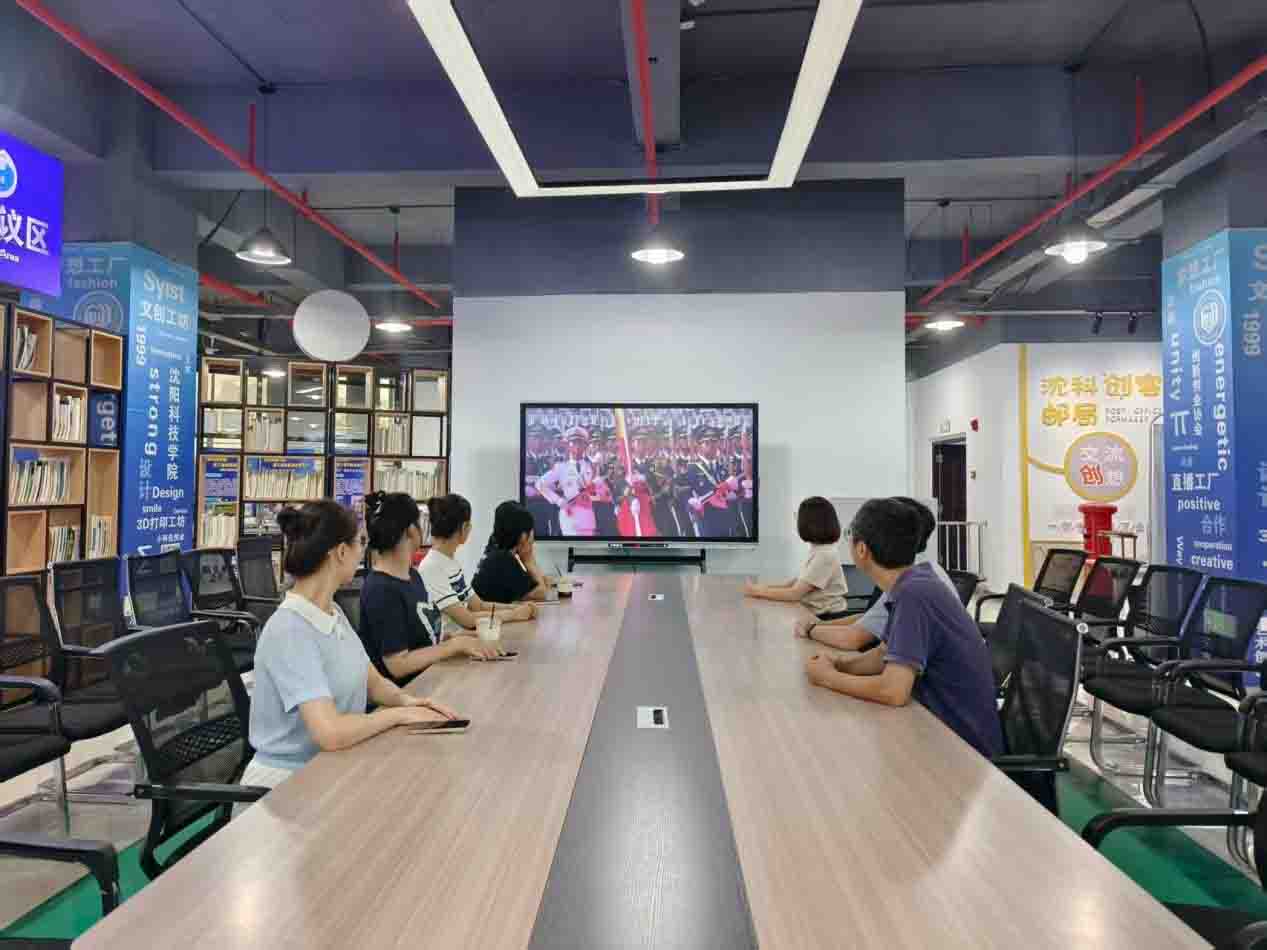 9月3日,为纪念中国人民抗日战争暨世界反法西斯战争胜利80 周年,9428cn太阳集团直属党支部于上午 9点在沈科创客空间开展了一场庄重而有意义的组织生活活动,全体党员以及积极分子共同观看九三阅兵直播。