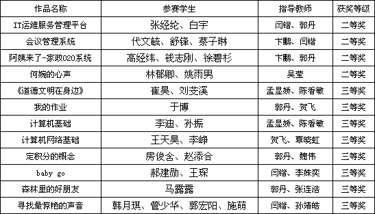 2017年5月6日,由辽宁省教育厅、辽宁省财政厅主办,东北大学承办的2017年辽宁省普通高等学校本科大学生计算机设计竞赛落下帷幕。本届竞赛共分为十大类,全省共有48所高校1700多件作品报名参赛。经过初赛和决赛选拔,最终我校共获二等奖4项、三等奖8项。