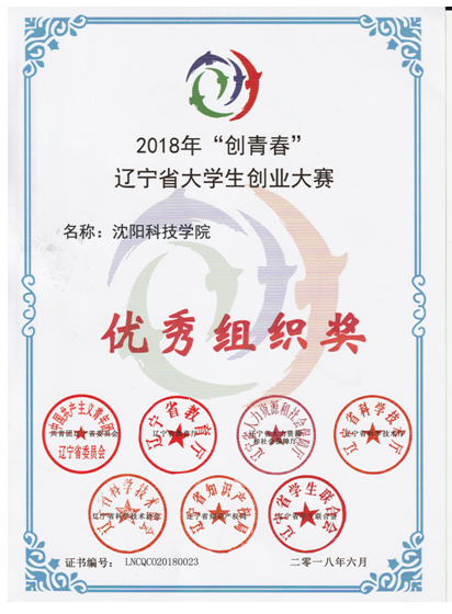 目前,由团省委、省教育厅、省科技厅、省科协和省学联共同举办的2018年“创青春”辽宁省大学生创业大赛各高校总体结果揭晓。我校在全省74所参赛高校中名列第23名,在全省民办高校中名列第2名,韩晓静、田川、王爽、高慧妍、厉安昕、卞鹏、李倩、邹强8名教师获得优秀指导教师称号,我校荣获优秀组织单位奖。