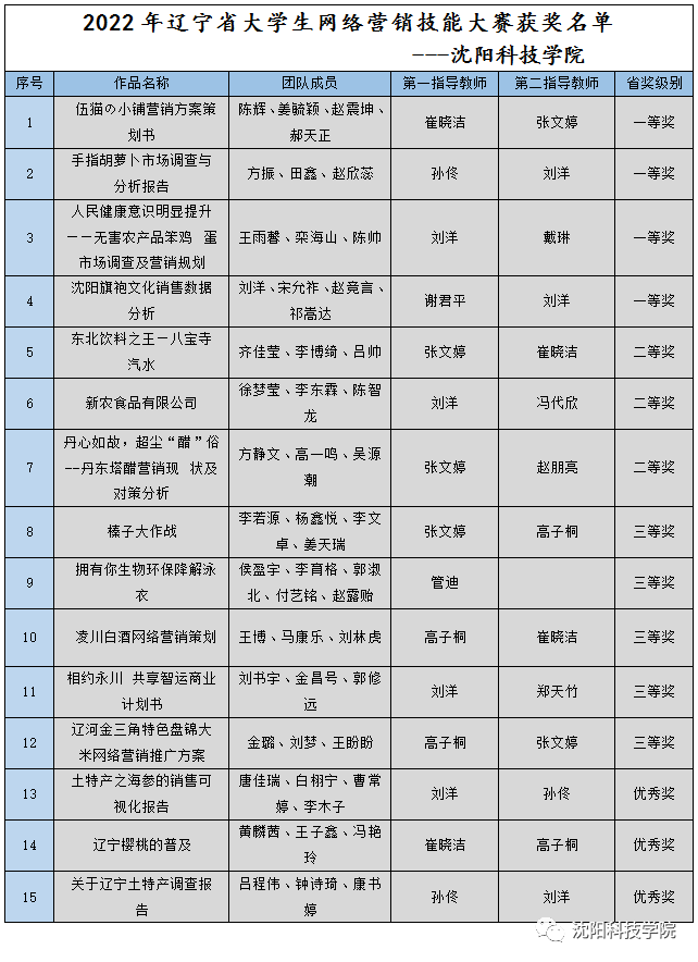 今年10月,2022年辽宁省大学生网络营销技能大赛落下帷幕。在本届赛事中,我校师生喜获15项省级奖励,分别是一等奖4项、二等奖3项、三等奖5项、优秀奖3项。