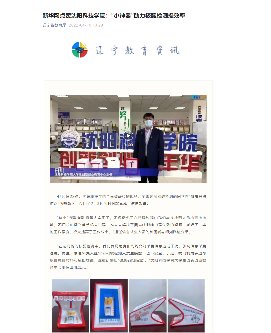 辽宁省教育厅官方报道我校师生研发的“扫码神器”