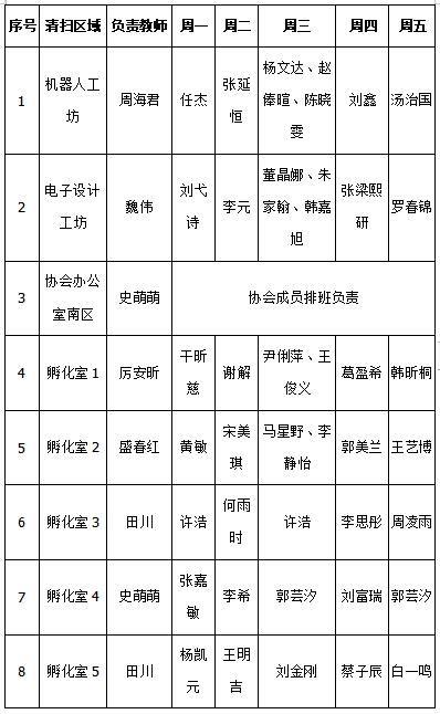 2. 各项目组成员要按照排版要求进行卫生清扫,遇其他活动时间冲突可与项目组成员串班。