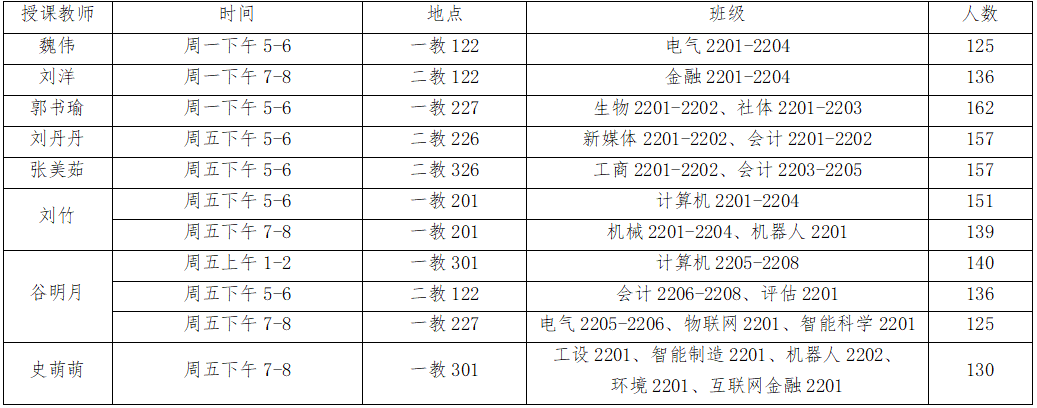 2022-2023第二学期创新创业教育学院教学小组听课安排