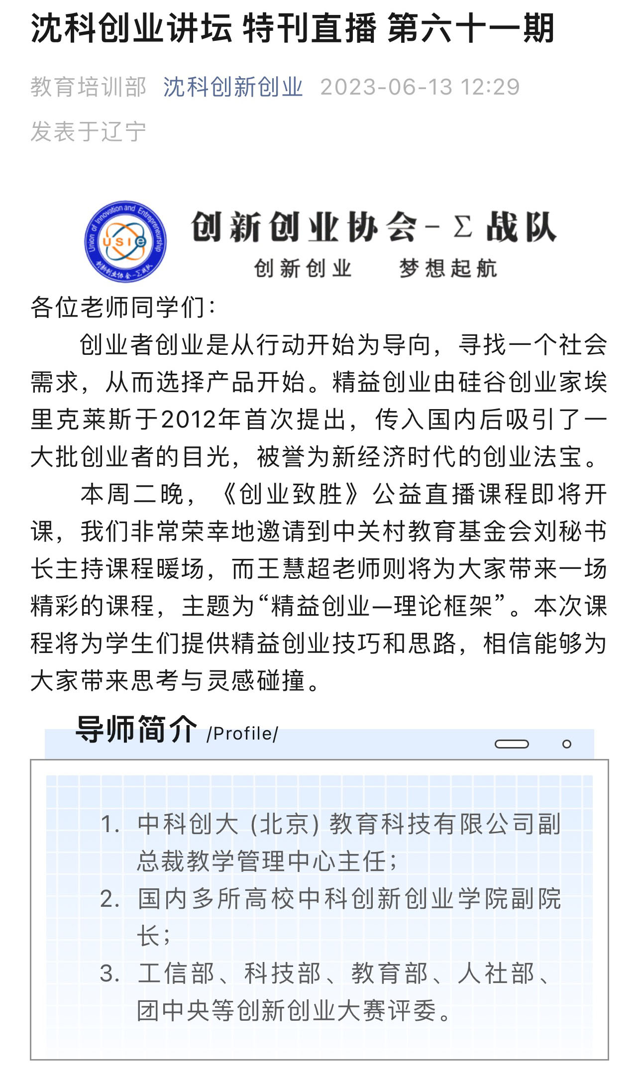 下条:【沈科创业讲坛】特刊直播第六十三期