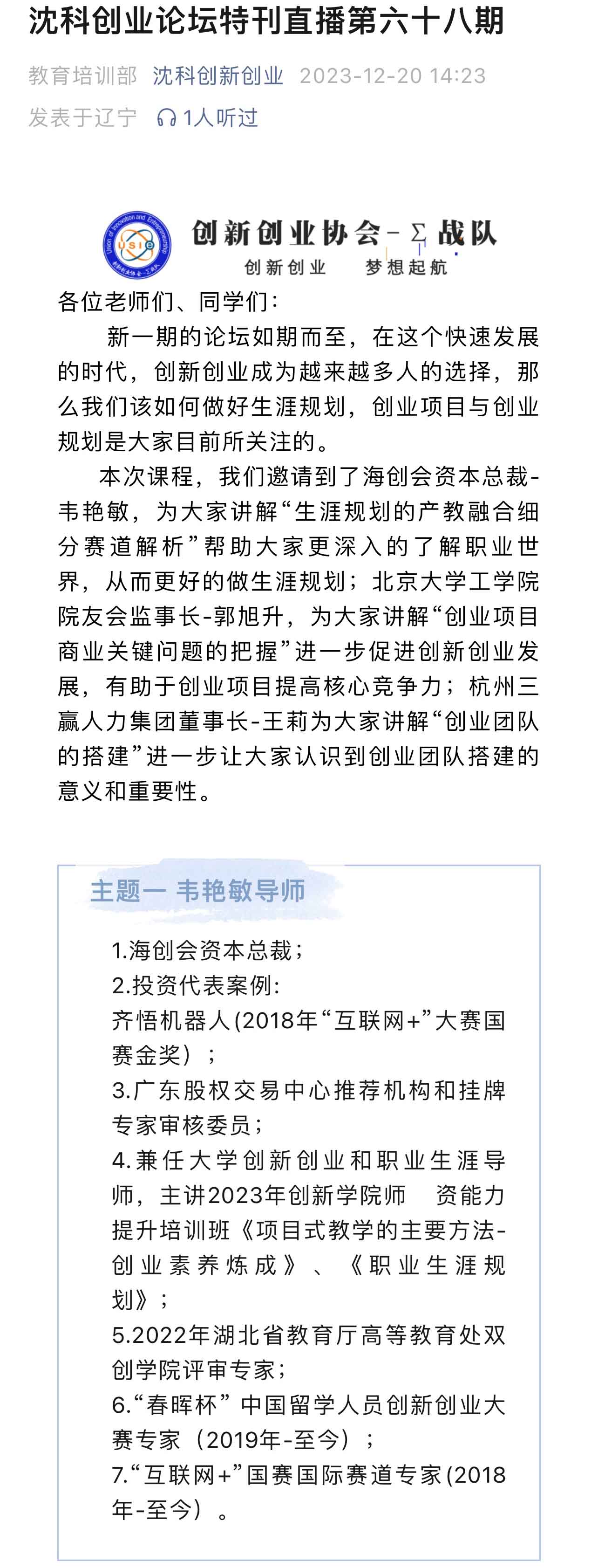 上条:【沈科创业论坛】 特刊直播第六十七期