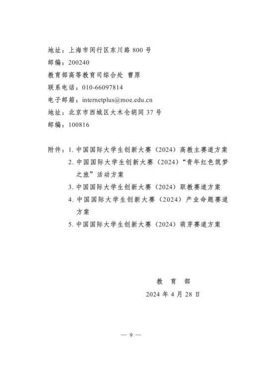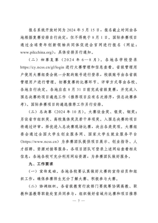 教育部关于举办中国国际大学生创新大赛(2024)的通知