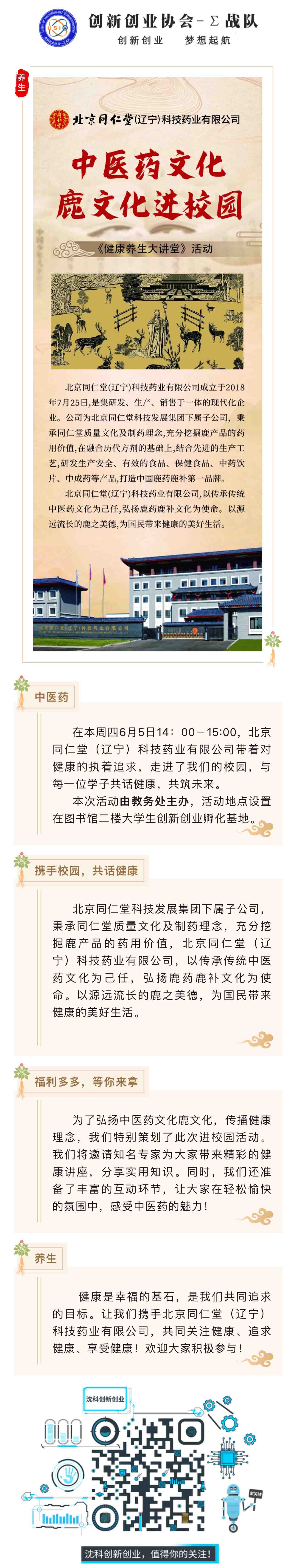 同仁堂进沈科开展健康养生大讲堂活动啦,同学们千万不要错过!