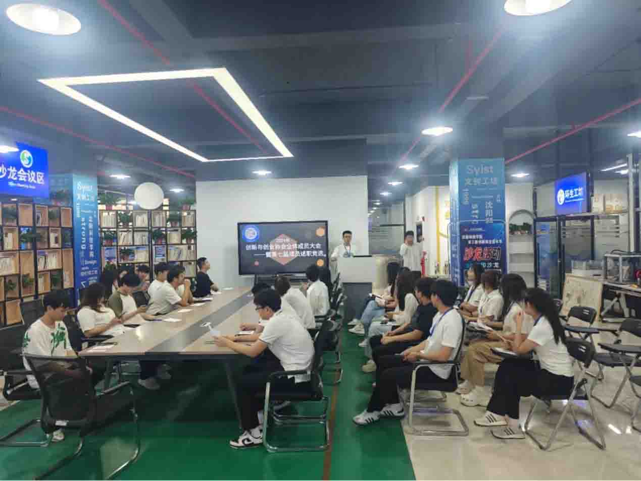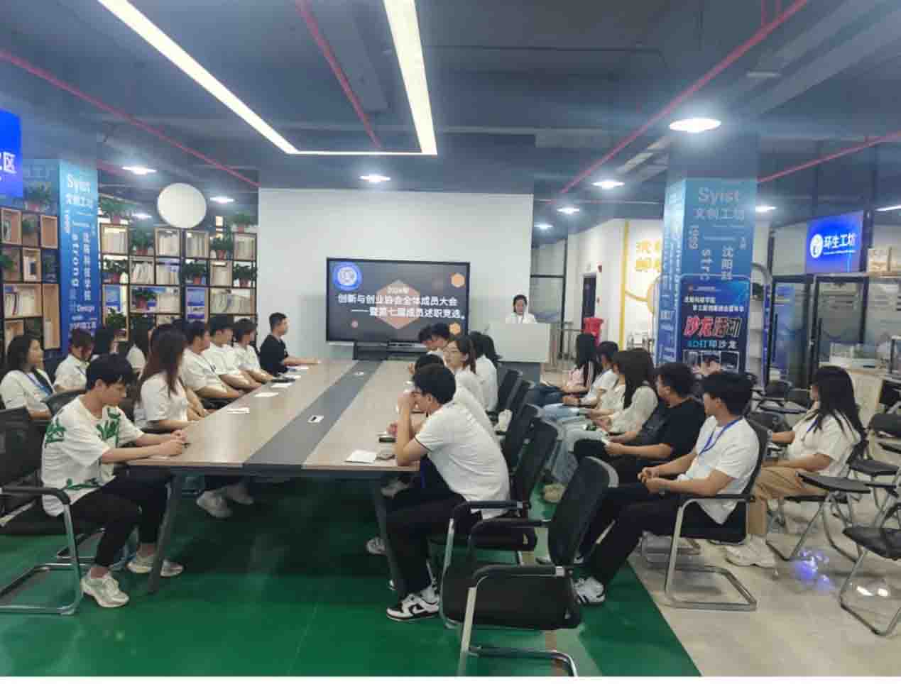近日,我校创新创业协会第八届会长团、部长团换届选举大会在沈科创客空间会议桌召开,会议由第七届创新创业协会会长李晓茹主持,创新创业协会全体成员出席此次会议。