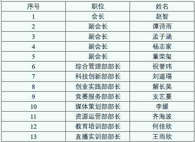 本次会议分为两个阶段,第一阶段是由竞选成员依据协会章程,依次上台进行述职演讲,第二阶段是全体协会成员共同投票,经现场唱票后,确定各职位拟任名单。经过公示后,第八届创新创业协会会长团、部长团名单如下: