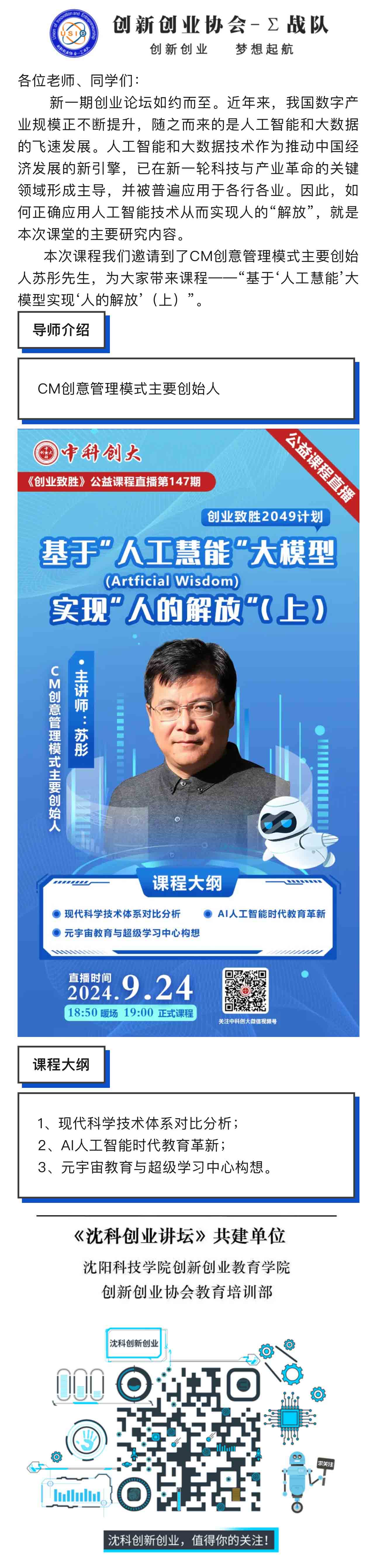 【沈科创业论坛】特刊直播 第七十九期