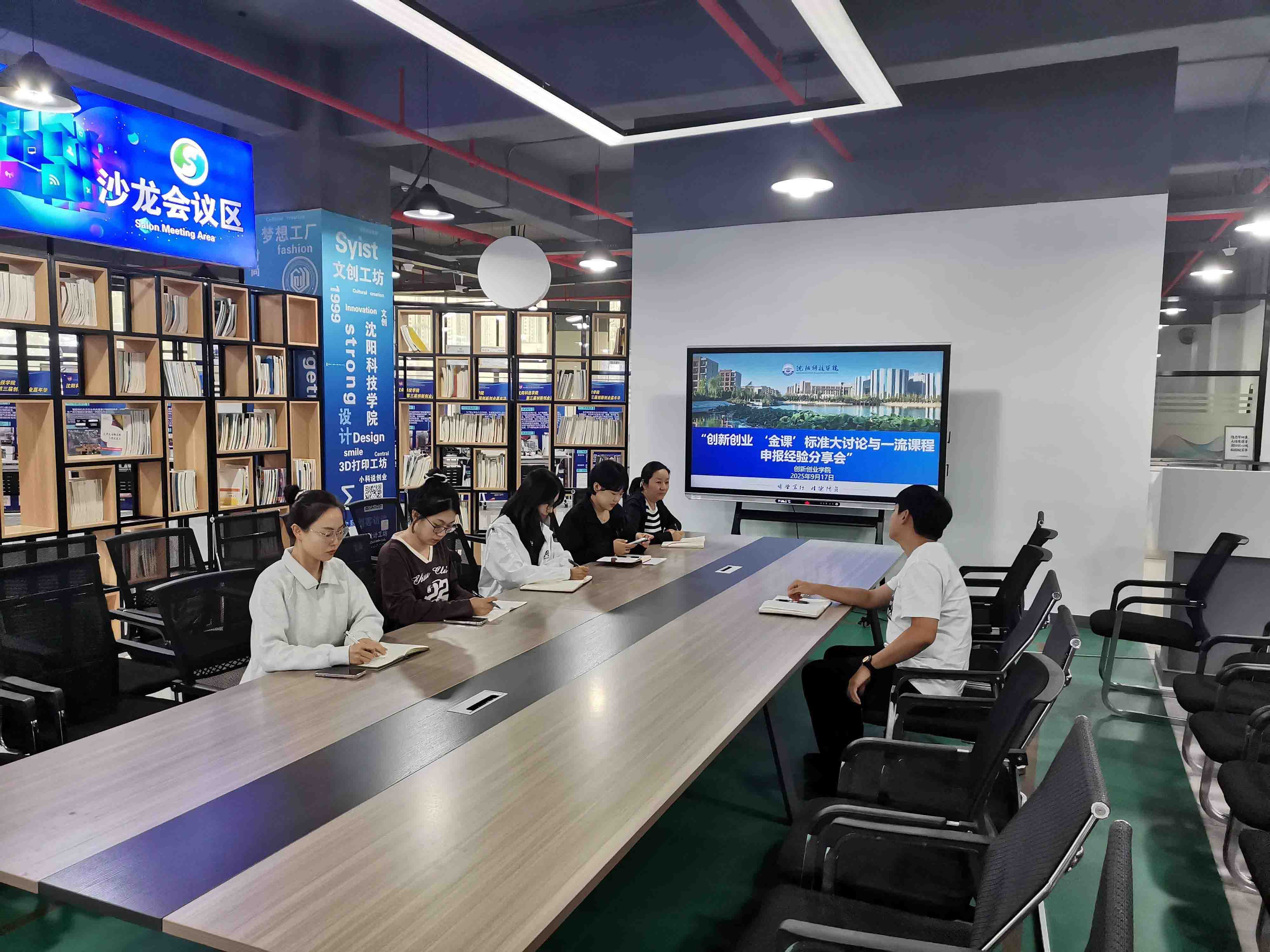 为进一步明确创新创业“金课”建设方向,助力一流课程申报工作提质增效,将课程建设与学校高质量发展目标深度融合,创新创业教研室于9月17日下午在沈科创客空间沙龙会议区召开主题为“创新创业‘金课’标准大讨论与一流课程申报经验分享会”教研活动。会议由9428cn太阳集团院长田川主持,教研室全体教师参会,共同围绕“金课”建设与课程申报展开深入研讨。 会议伊始,刘竹老师作为主讲人,围绕“金课”标准与一流课程申报文件要求展开详细分享。在“金课”标准解读环节,她从“两性一度”(高阶性、创新性、挑战度)核心要求