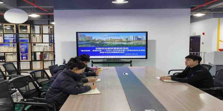 12月22日下午,学校创新创业教研室召开“精准施策,前瞻布局”专题教研活动,全体专任教师齐聚一堂,围绕2025-2026学年第二学期创新创业课程准备与优化展开深入研讨。会议伊始,田川老师结合行业趋势与学生学情,阐述新学期课程整体规划,剖析现有课程在教学内容、实践环节的短板,明确以“项目驱动、实践导向”为核心的优化方向。 史萌萌老师聚焦教学方法创新,分享案例教学、情景模拟及竞赛融合的应用思路,详解实操落地路径。 刘竹老师围绕课程资源建设,提出开发校企特色