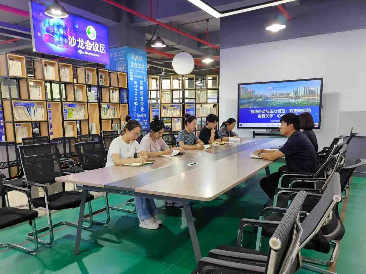 为提升创新创业专任教师的自我抗压与情绪管理能力,以及有效疏导当代大学生在学习就业压力和心理问题方面的工作能力,创新创业教研室于8月27日下午在沈科创客空间沙龙会议区举办了2025年下半年的首场教研室活动,主题为“情绪劳动与压力管理:双创教师的自我关怀”。会议由创新创业教研室主任田川主持,教研室全体教师参与了此次会议。