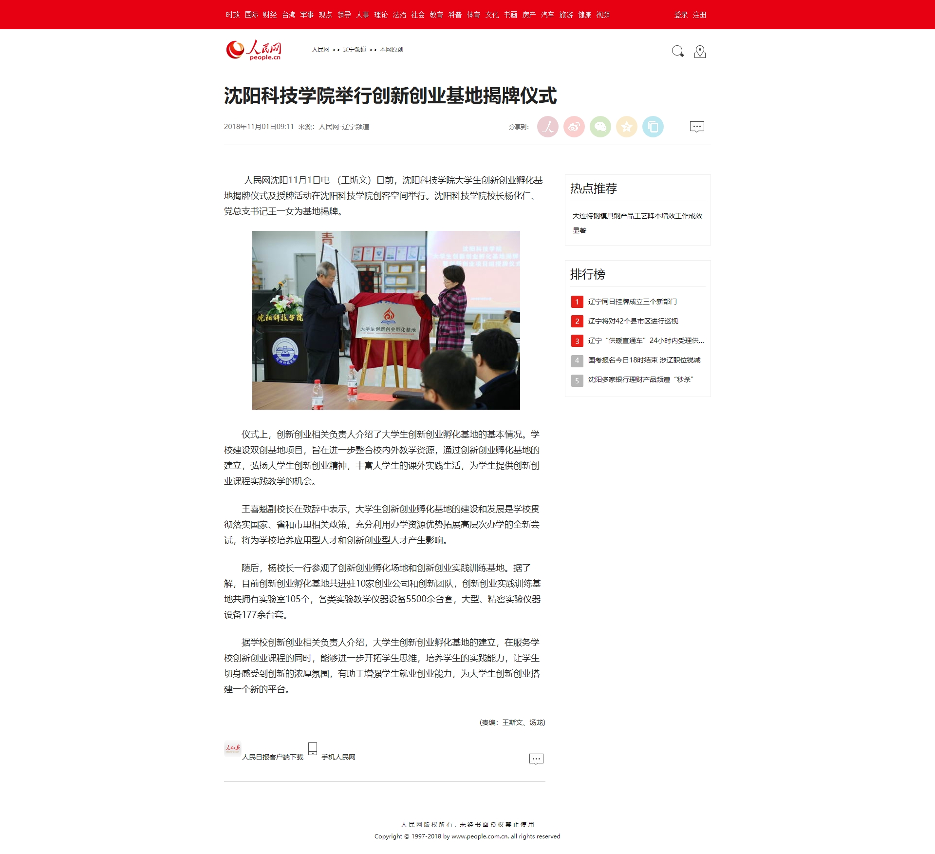 我校大学生创新创业孵化基地揭牌受到人民网、新华网等媒体的广泛关注